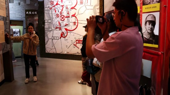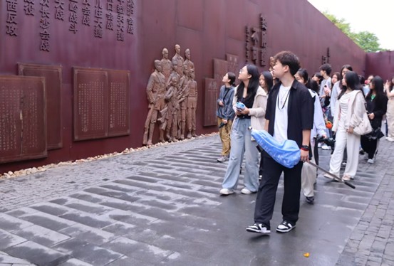 图为新传学院学生党支部开展“忆峥嵘岁月 走红色之旅”主题党日活动现场。记者 王耀威 摄。