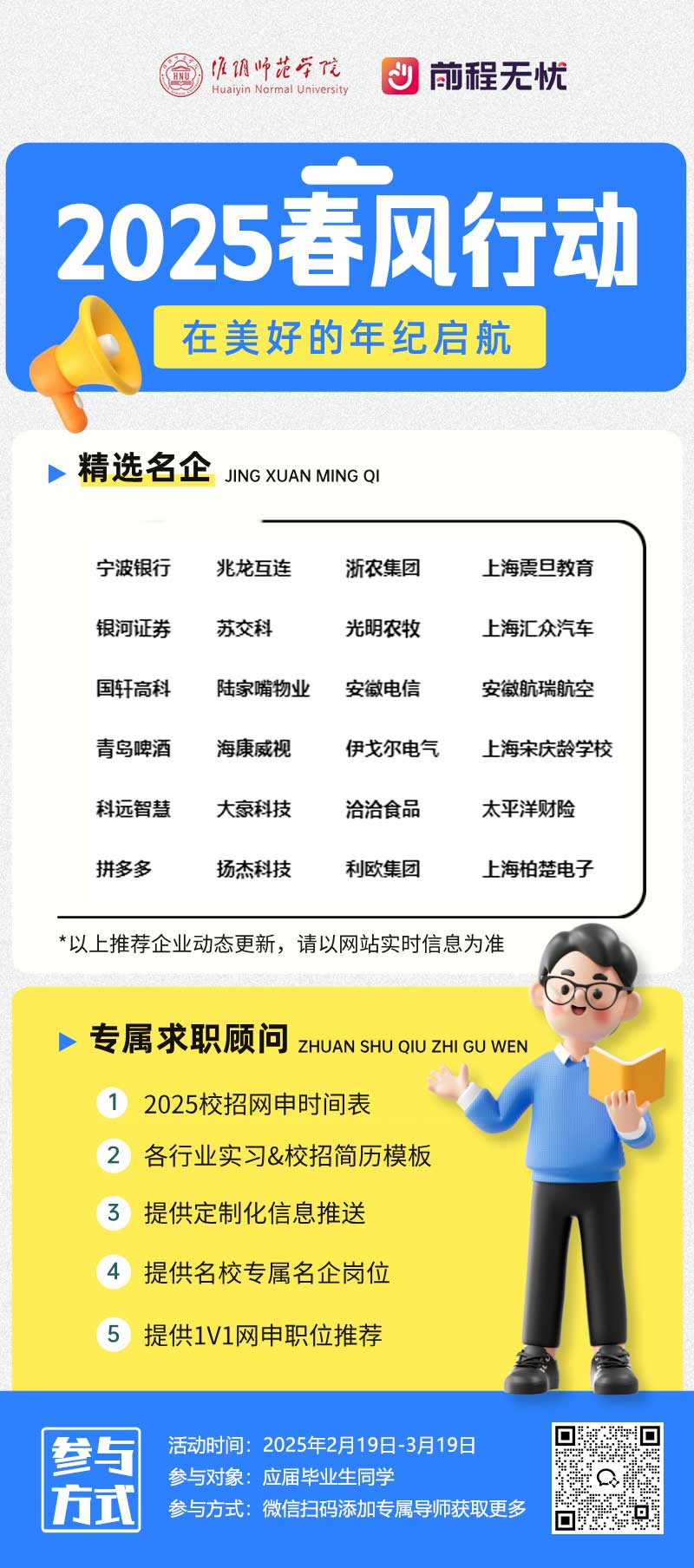 为贯彻落实党中央、国务院关于做好高校毕业生就业工作的决策部署,促进毕业生高质量就业,我校联合前程无忧举办“春风行动”公益活动。