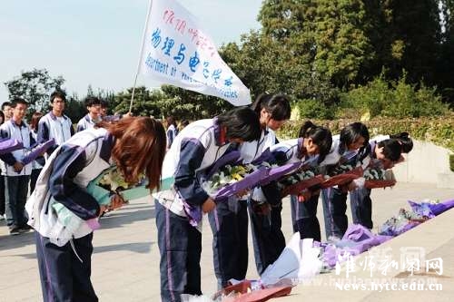 中新淮安网9月26日电(唐猛 王越)淮阴师院物电学院以新生教育为契机,深入学习恩来精神,加强新生思想道德教育,9月25日,物电学院2011级新生在院党委副书记任守军的带领下,瞻仰了周恩来纪念馆,学习恩来精神,感受伟人风采。
