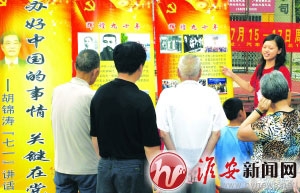 淮安新闻网7月12日讯(通讯员 陈暐)7月10 日,志愿者向社区居民讲述中国共产党的光辉历程,宣传胡锦涛总书记在中国共产党成立90周年大会上的重要讲话精神。