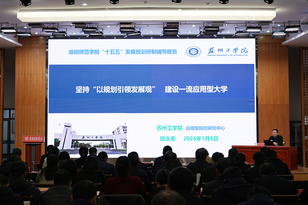 会议特邀苏州工学院应用型院校研究中心主任顾永安教授作题为《坚持“以规划引领发展观”,建设一流应用型大学》的专题报告。他从规划研制的阶段特征、政策依据、顶层设计、方法论体系等方面,深入剖析了应用型高校规划编制的理论框架与实践路径,并就规划研制过程中需关注的十大关系进行了解读,分享了应对挑战、推动改革发展的举措与经验。