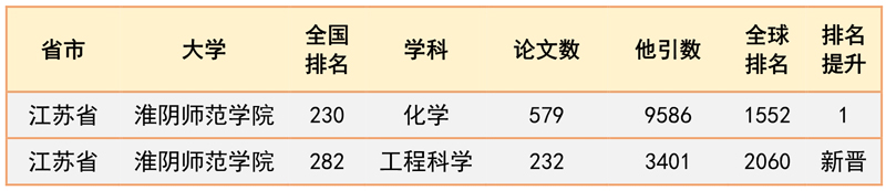全国各高校ESI上榜学科情况