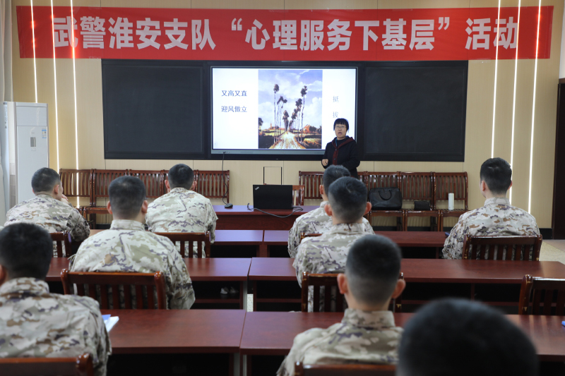 常逢锦副教授先后前往执勤一中队、执勤二中队和涟水中队,开展了以“白桦礼赞:傲立冰雪铸忠诚”为主题的心理辅导,旨在增强武警官兵的勇气、韧性和战斗力。课程以千里冰封、傲立风雪的白桦树为隐喻,赞颂其挺拔坚韧的生命力,引导官兵感悟扎根艰苦环境、身心合一的忠诚品格;通过历史故事,诠释战士的家国情怀与民族大义。