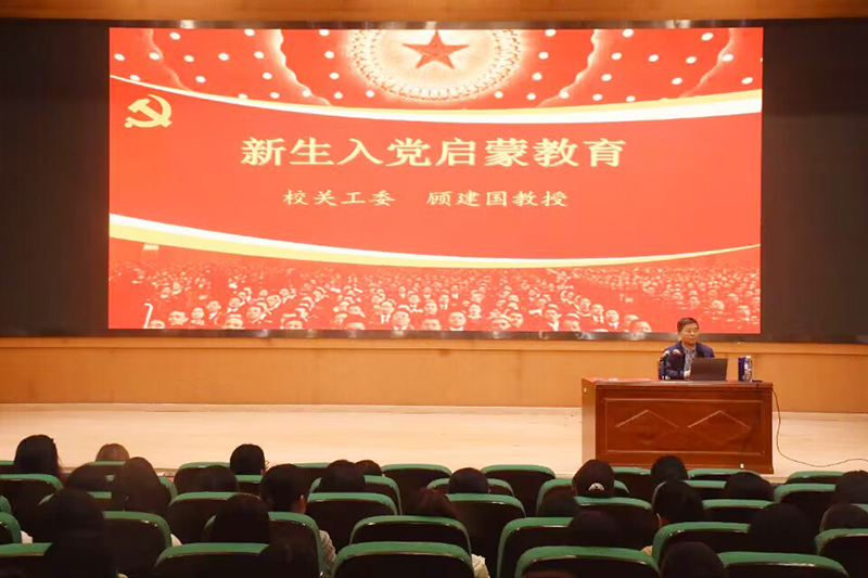 顾建国从“当代大学生为什么要积极争取加入中国共产党” “中国共产党的性质和宗旨是什么”“怎样才能加入中国共产党”三个方面对同学们做了全面的讲解。他提出,国家强大民族富强离不开中国共产党的领导,青年人的前途命运与中国共产党紧密相连、青年人的成长离不开党的培养。因此,当代大学生因热爱伟大祖国、为实现中国特色社会主义而奋斗。