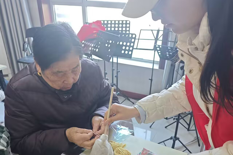 “艾香暖冬传古艺,情系桑榆乐融融”——教育科学学院开展和社区老人共做艾草锤活动