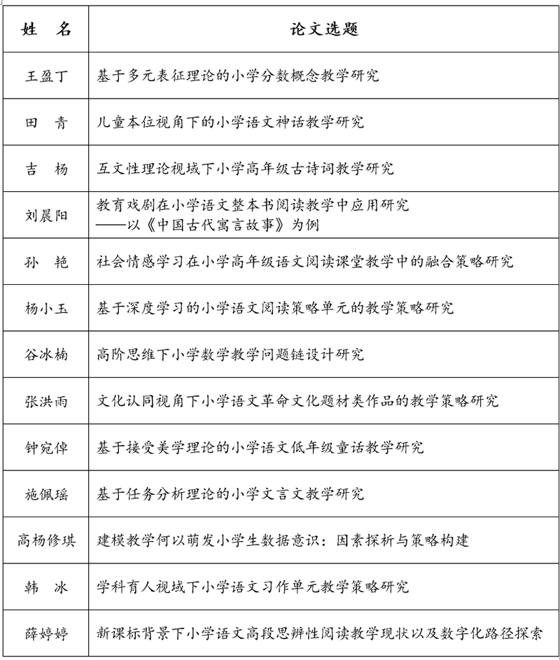 ◆研究生姓名及论文选题