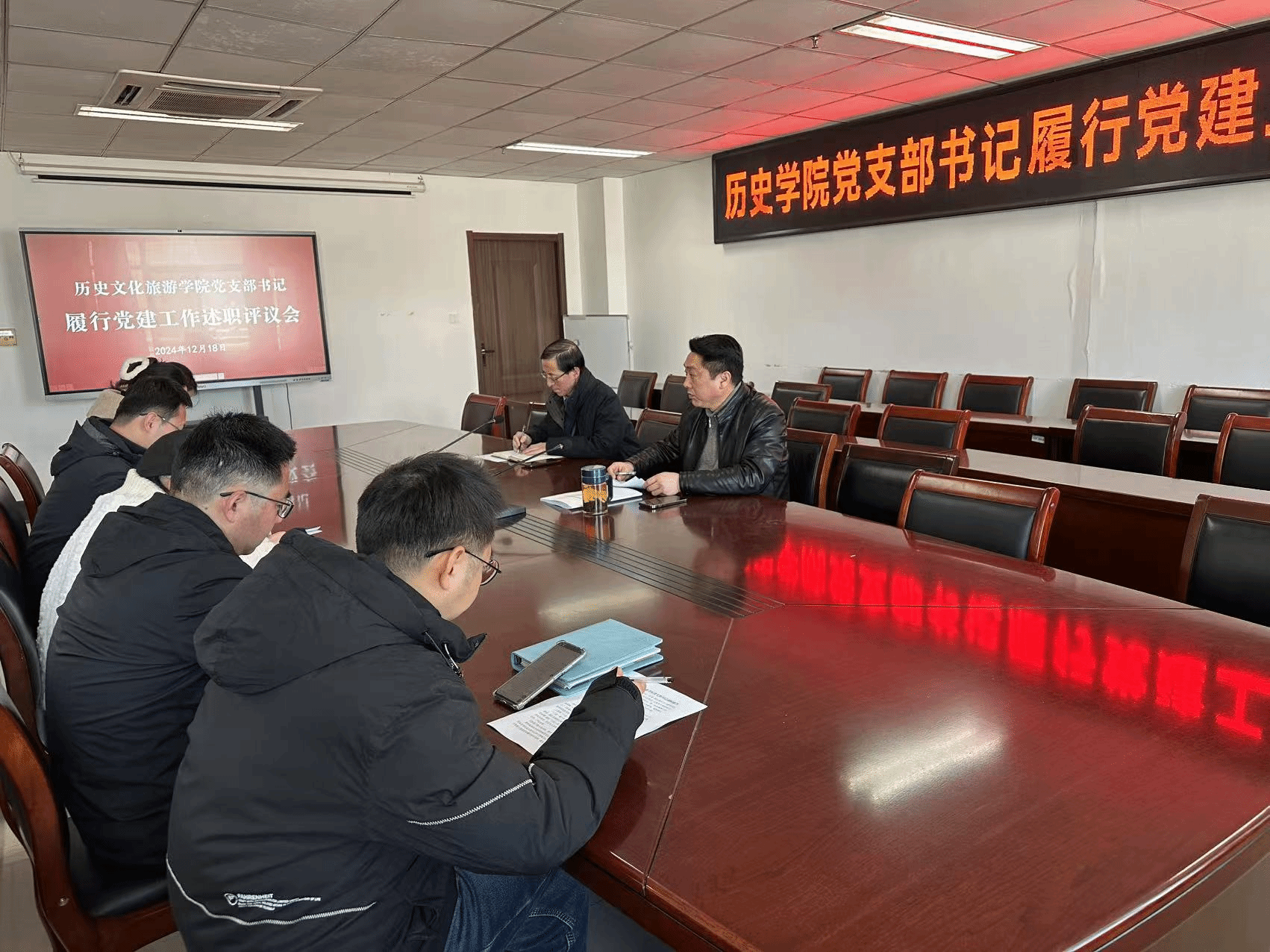 为进一步强化党建引领,压实党建工作责任制,历史学院于12月18日在弘文1-612会议室召开党支部书记履行党建工作述职评议会。院党委书记滕祥主持会议,院长张文华参加会议。
