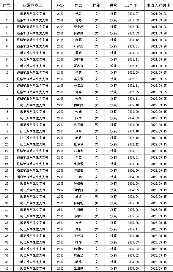 历史文化旅游学院2024年入党积极分子公示(一)