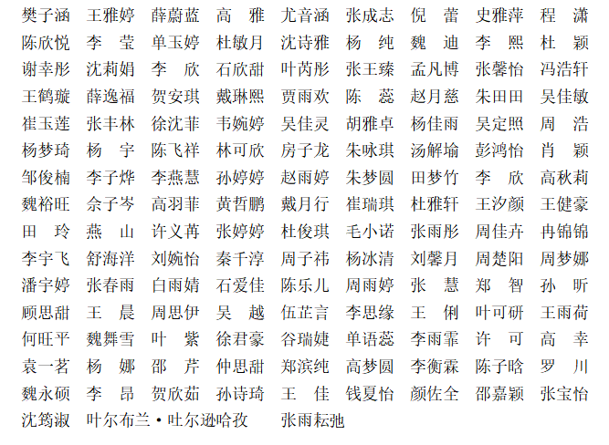 公示名单如下(排名不分先后):