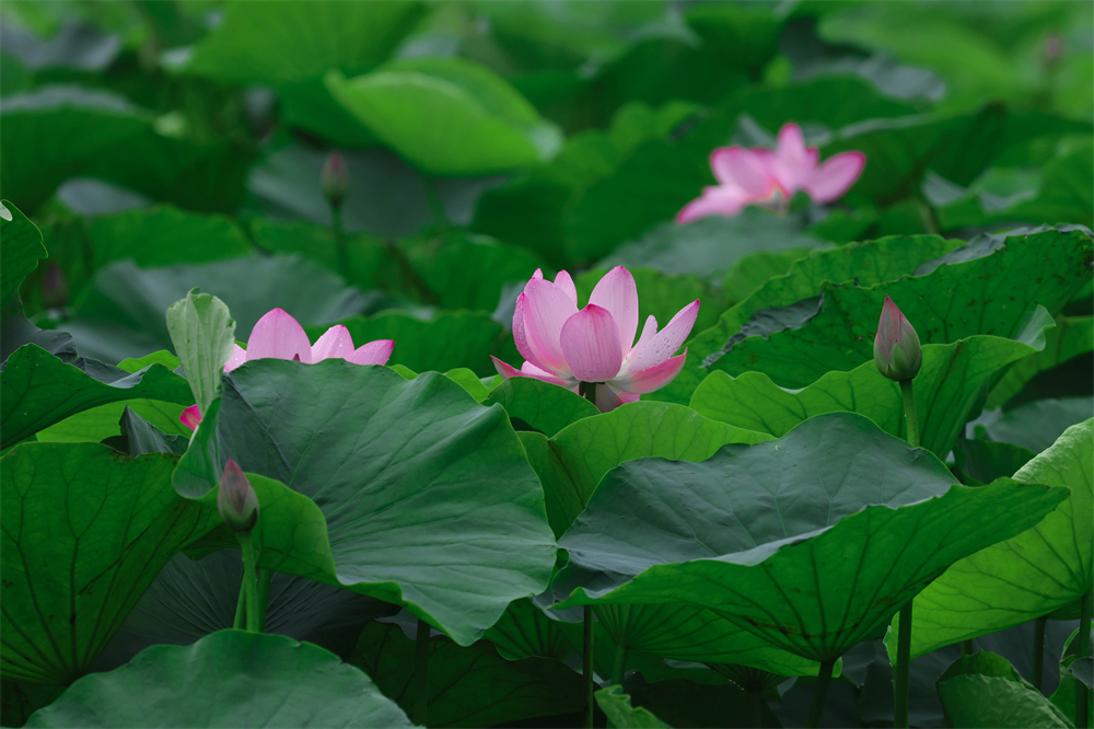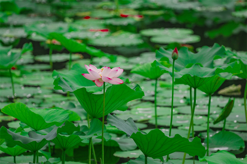 编者按:晨风细雨,荷香氤氲。镜月湖畔,新荷初绽:嫩叶托起凝露的花苞,粉瓣在细雨中轻颤,潋滟湖面蜻蜓点水,蜂绕莲台。更有睡莲铺展艳色,依偎碧叶。初夏时节的淮师校园,正展开一轴莲韵生香的水墨丹青。