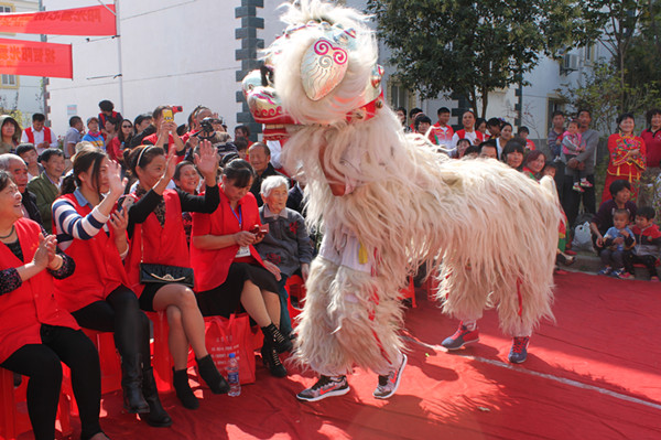 龙狮团、武术俱乐部等社团的同学们带来了舞龙舞狮、武术、魔术、大众健美操等表演。欢快的音乐,青春洋溢的表演,让现场的老人们兴奋不已,掌声阵阵。“真热闹,咱们这里好久没有那么热闹了。”有位坐在轮椅上白发苍苍的奶奶对着志愿者们竖起了拇指。