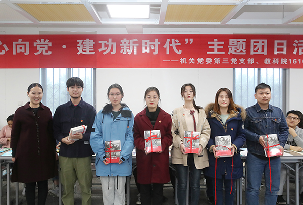 焦富民所在的机关第三党支部向1610团支部学生代表赠送了《习近平的七年知青岁月》及《周恩来传》两本书籍,希望同学们能够熟读伟人事迹,从中汲取精神养料,获得前行动力。机关第三党支部党员包天强老师为同学们作考研考编等职业生涯规划辅导。