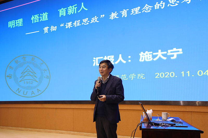 图为南京航空航天大学副校长施大宁教授应邀作专题报告。记者 唐瑀 摄
