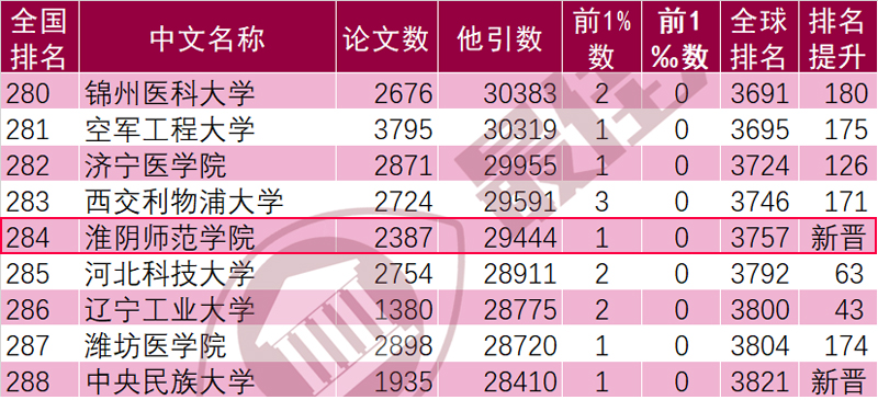 出彩淮师 | 化学学科进入ESI全球前1%