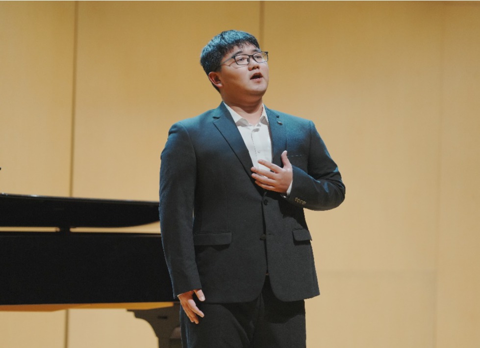 音乐会在深情婉转的《我的爱人你可听见》中拉开帷幕。该曲作为歌剧《长征》的经典选段,学子以细腻的情感处理与扎实的气息控制,将革命年代夫妻间的思念与牵挂娓娓道来。演唱中,学子精准把握旋律的起伏变化,在“待到云开见日时”的高潮段落,以饱满而不张扬的音色传递炽热情感,尾句“笑看大地换人间”的气声收尾余韵悠长,瞬间将观众带入那段烽火连天却情深意重的岁月,赢得全场热烈掌声。
