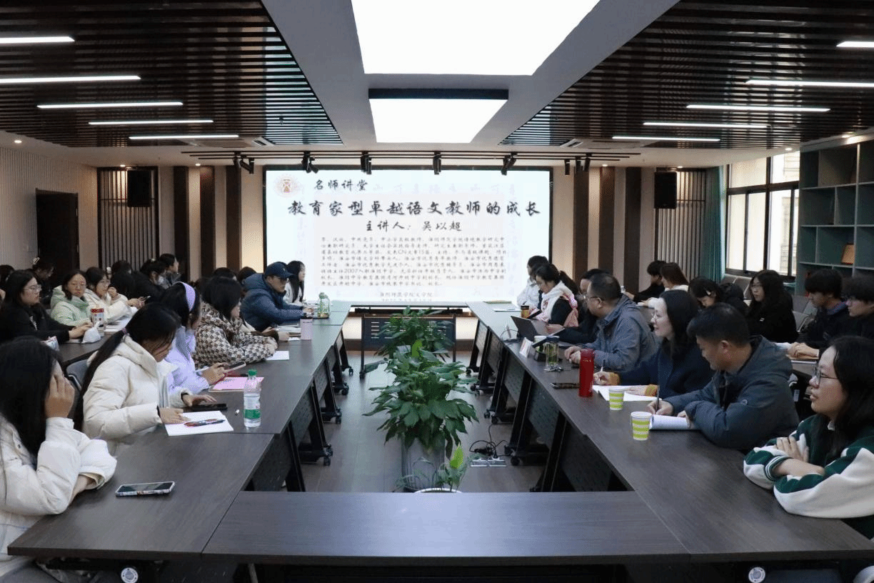 为弘扬教育家精神,培养师范生教育信念,12月10日下午,文学院围绕“教育家型卓越语文教师成长”主题举办名师讲堂活动,特邀开发区开明中学、淮安市枚乘中学书记、校长吴以超担任主讲嘉宾。文学院部分研究生和本科生参加活动。中文系主任刘飞担任主持。